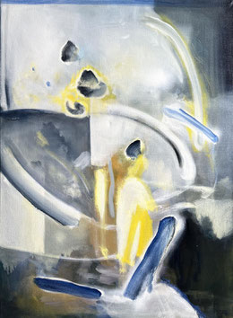Jan Valik, Resonance Change, 2024, Öl, Acryl und Sprühfarbe auf Leinen, 135 x 110 cm