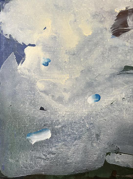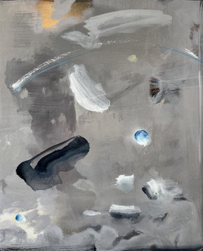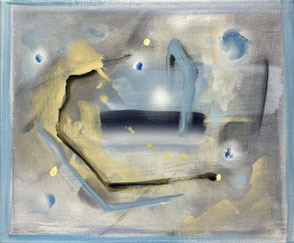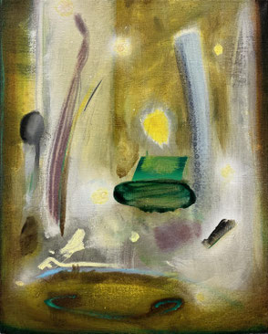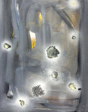 Jan Valik, Levity in Mind, 2025, Öl, Acryl und Sprühfarbe auf Leinen, 50 x 40 cm