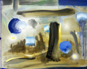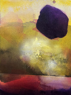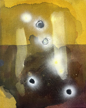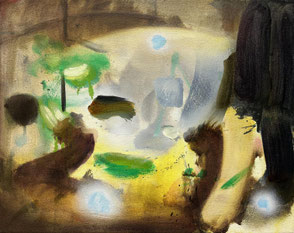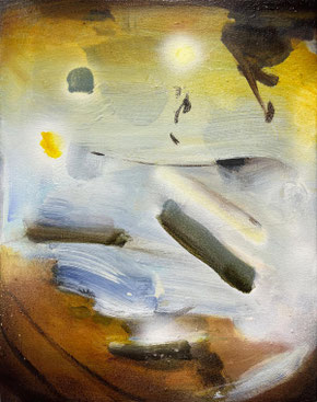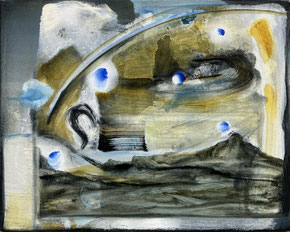 Jan Valik, Levity Earth, 2025, Öl, Acryl, Tusche und Sprühfarbe auf Leinen, 50 x 40 cm