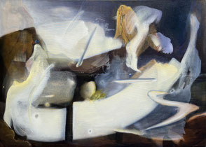 Jan Valik, Levity Principle, 2024, Öl, Acryl, Tusche und Sprühfarbe auf Leinen, 102 x 82 cm