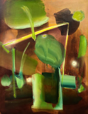 Jan Valik, Forest Mind, 2025, Öl, Acryl und Sprühfarbe auf Leinen, 130 x 100 cm