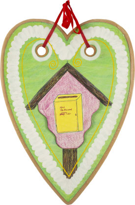 Alfred Klinkan, Herz mit Kreuz und Sinnspruch, 1974-75, Mischtechnik auf Dämmplatte, 104 x 74 cm