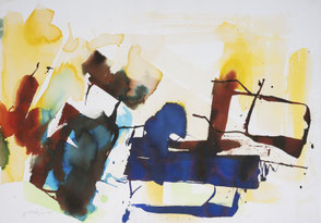 Maßgebend für MAIRWÖGER ist, bei allem Kalkül, der Fluss der Farbe, die aus dem fortlaufend entwickelten malerischen Geschehen organisch hervortretende Formenverkettung und Formenbestimmung. Sie beruht nicht zuletzt auf jener schwankenden, im Malakt hervortretenden Emotionalität, die mit dem Risikofaktor freier Malerei zusammenhängt und sich mit spontaner Kombiniergabe verbindet. GOTTFRIED MAIRWÖGER malt ohne Netz. Was er macht, basiert auf solidem Rüstzeug und andauerndem Exerzitium, unterliegt aber auch ganz und gar der momentanen Eingebung und einem Improvisationsvermögen, welches das jeweilige Vorherige fortzuführen versteht und mit höchster Konzentration Werdegang und Fertigstellung der Komposition im Auge hat.